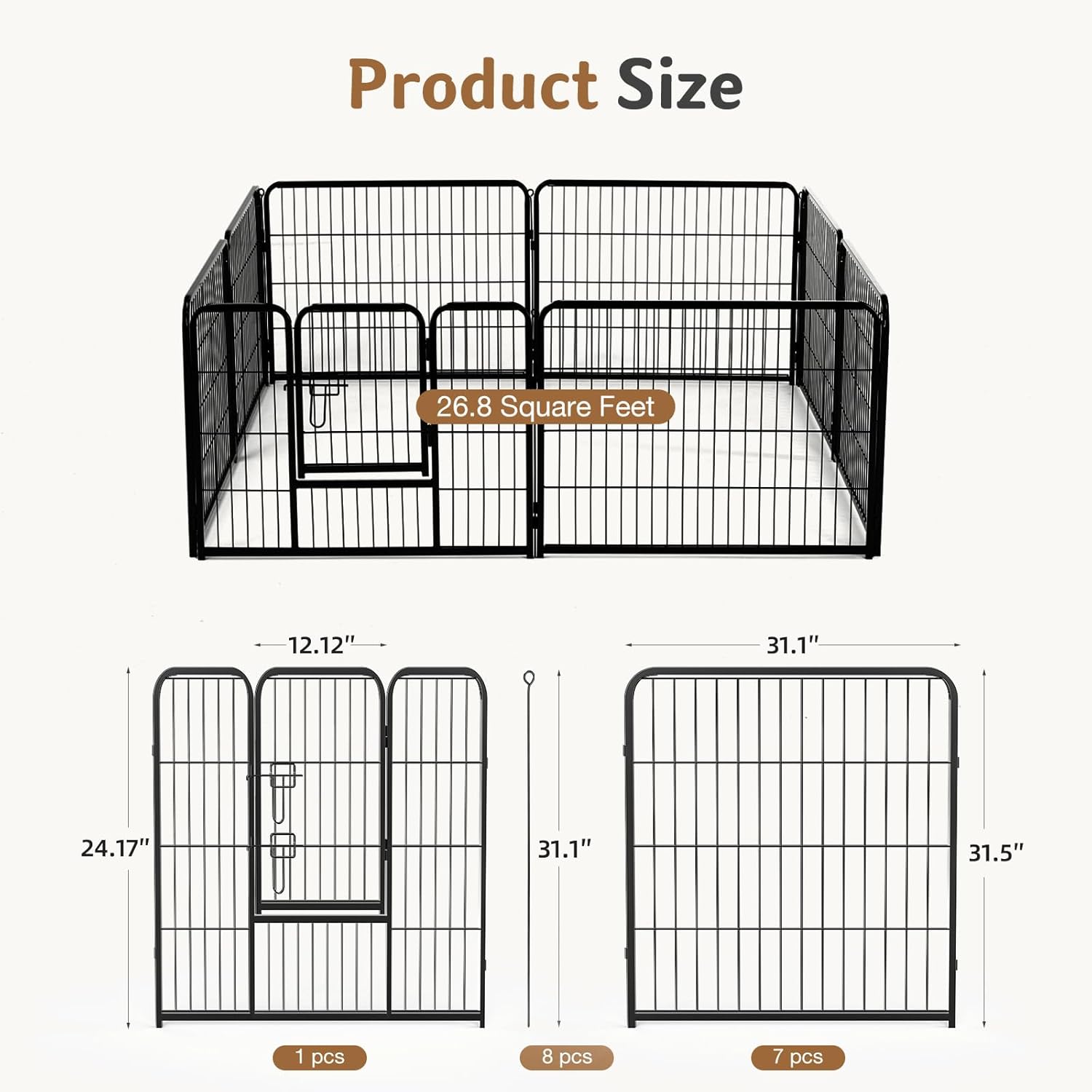 DUMOS Dog Playpen Indoor, Metal 32 Inch 8 Panels Foldable Pet Fence with Door, Outdoor Small Medium Large Dog Puppy Portable Exercise Play Pen for RV Camping, Trips, Play Yard