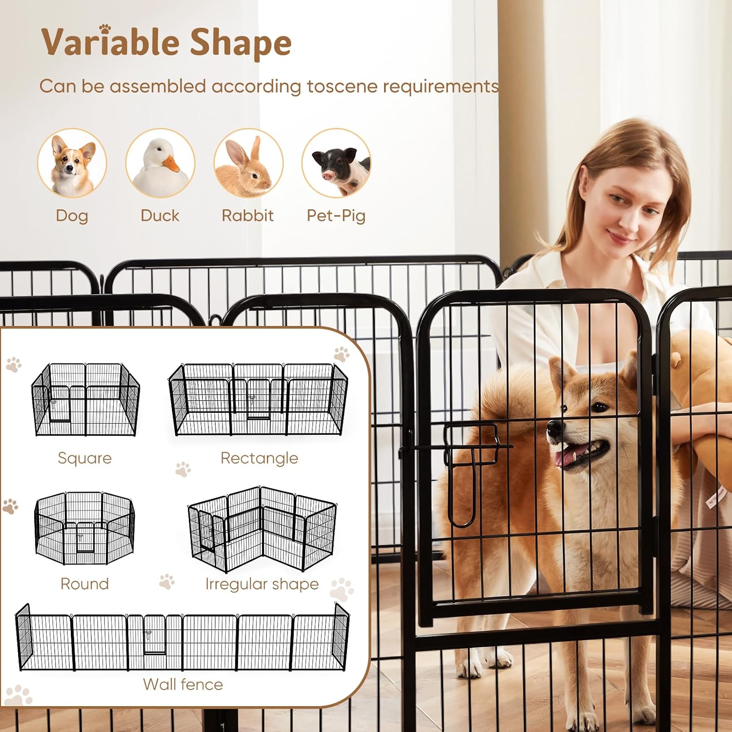 Tailored Options & Perfect Fit: Dog playpen with door are available in 8-panel and 16-panel versions and in 3 heights: 24″, 32″ and 40″. Our diverse selection ensures a perfect fit for dogs of all sizes and accommodates kittens, cats, rabbits, and more, providing a reliable, comfortable space for all pets.