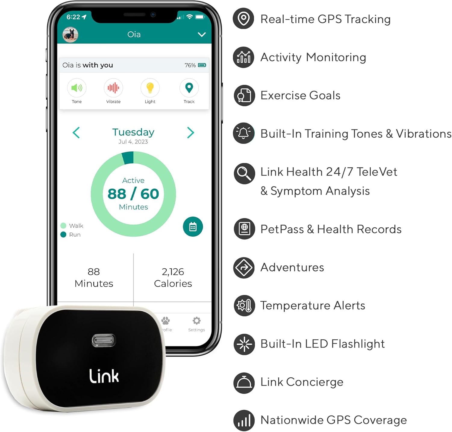 6 reviews for Link GPS Dog Tracker + Activity Monitor | Training Tools, Health Tracker, Waterproof, Flashlight, Lightweight, PetPass & Vet Record Storage, Fits On Most Collars | iPhone & Android Apps