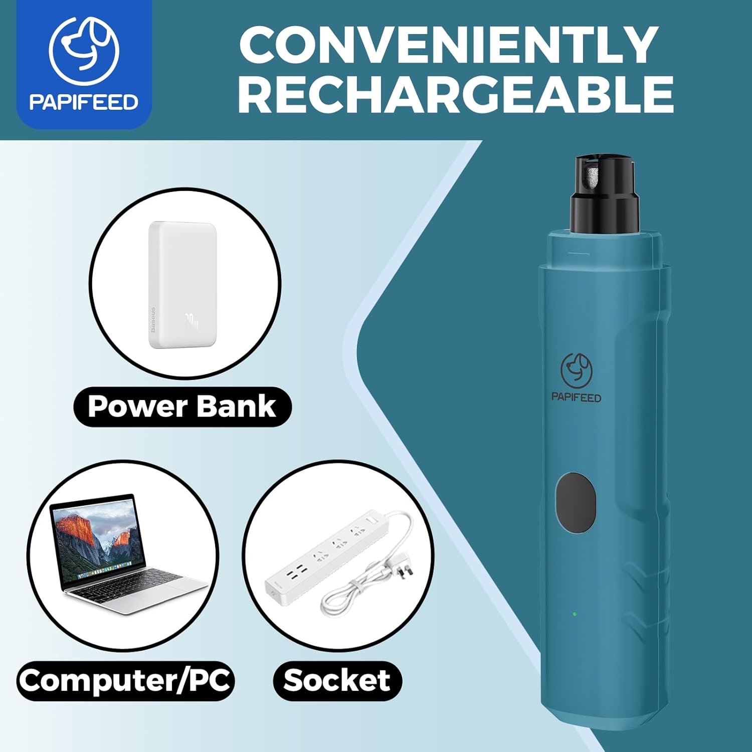 8 reviews for PAPIPAFFEED Dog Nail Grinder Upgraded with 2 LED Lights, 3-Speed Rechargeable & Quiet – Upgraded Electric Pet Nail Trimmer for Small Medium Large Dogs & Cats, Painless Paws Grooming Tool – Blue