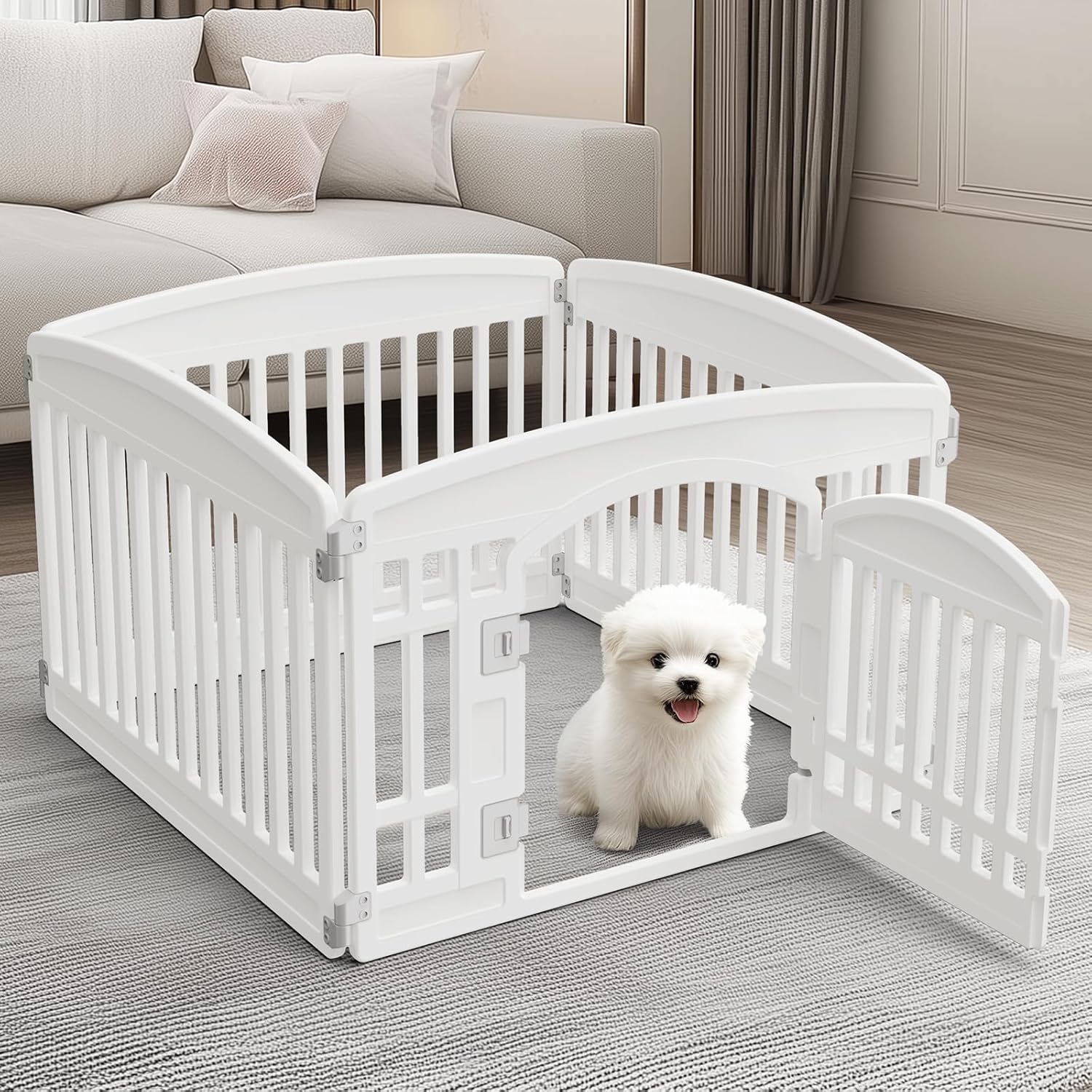8 reviews for SMUG Dog Playpen 4-Panel 24 Inch Safe Secure Indoor Outdoor Pet Fence, Folding Portable 35 x 35 x 24IN, Ideal for Small to Medium Dogs Easy to Clean (White)